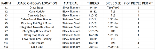 Fastener Kits for PSE Bows